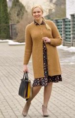 Длинный кардиган с красивым тандемом из реглана и круглой кокетки, выполнен узором из зеркальных скрещенных петель. С нагрудными вытачками и другими технологиями для лучшей посадки изделия по фигуре.