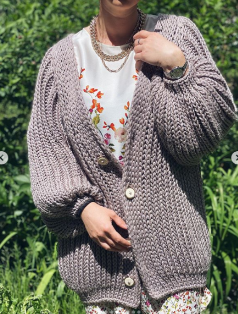 Но так как модель овер, смело можно вязать размер 48-50 на 52-54 с менее свободным облеганием изделия. Количество мотков указано на короткий вариант кардигана, на длинный вариант- прибавляем 2 мотка к каждому размеру. ?
