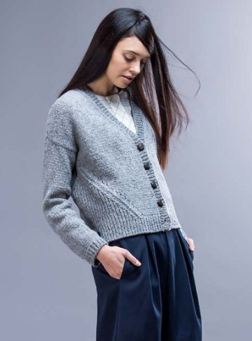 Кардиган квадратной конструкции со спущенным плечом, начинающимся от ребристого узора побокам изделия. Декоративные ажурные панели по краям треугольных вставок резинки , повторяютлинии V- образного воротника и обеспечивают легкое формирование линии талии. Начало ребристогоузора должно попадать на самую высокую точку вашего бедра для получения более аккуратного иопрятного внешнего вида. Носите этот кардиган с узкими джинсами или классической юбкой —карандаш с завышенной талией для офиса.