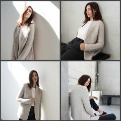 Отличный кардиган Marmor связан сверху вниз одной деталью без швов. В начале работы выполняется временный набор для воротника, затем петли поднимаются по воротнику для вязания кокетки. После формирования проймы кардиган вяжется уже одним полотном.