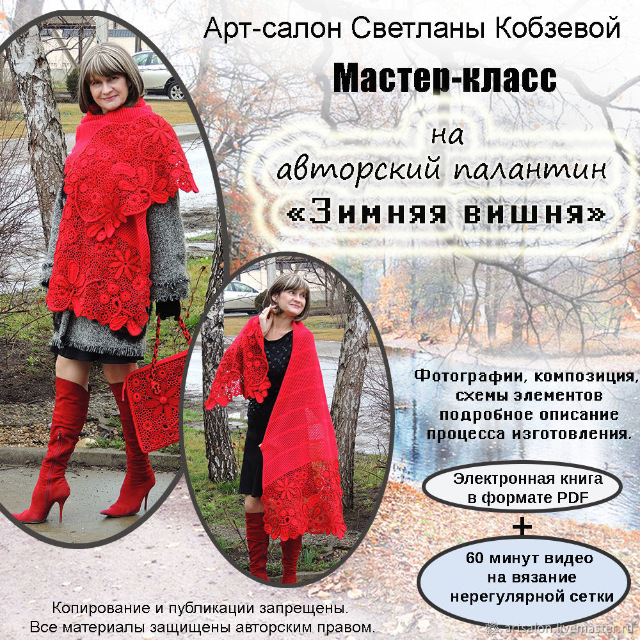 [Вязание](Крючок ) Мастер-Класс палантин 'зимняя вишня' PDF (Светлана Кобзева)