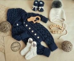 Описание в формате pdf.Включает в себя 2 размера 0-3 мес (56-62 см) и 3-6 мес (62-68 см). Весь комбинезон связан единым полотном, без единого шва.