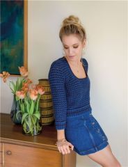 Короткий полосатый пуловер от дизайнера Ким Харгрейвз из книги Объятия (Embrace) с акцентом на вырез горловины сердечком безусловно станет украшением любого женского гардероба.