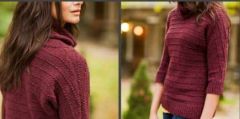 Комфортный вязаный пуловер Гринвуд с рукавами доломан выполняется поперек от манжета до манжета двумя деталями. Простая форма украшена текстурным узором с дорожками из скрученных петель. Большой уютный воротник, манжеты и нижняя кромка набираются после сшивания и вяжутся по кругу.