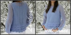 У пуловера 2 ряда оборок, еще 2 ряда пришиты к нижней майке. В описании есть инструкция, как сделать пуловер с 4-мя рядами оборок.