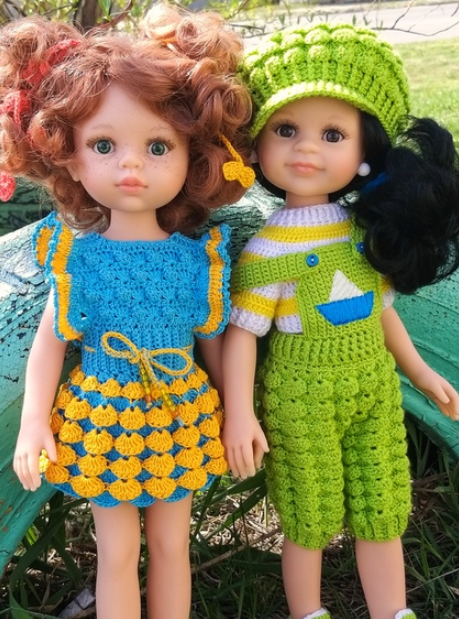 Вы получите журналы с инструкциями по вязанию крючком одежды для кукол. PDF-журнал 'Радужное Детство' на 28 страницах и PDF-журнал 'Радужное Детство. Сарафан' на 24 страницах включают в себя: