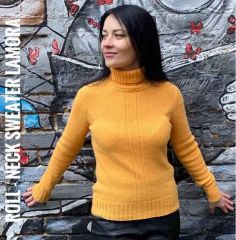 два силуэта - прямой и приталенный, три варианта длины изделия и два варианта длины рукава. Водолазка вяжется снизу вверх по кругу, затем раздельно - перед и спинка. Рукав втачной, также вяжется снизу вверх по кругу, окат прямыми рядами. Предусмотрена горизонтальная вытачка для груди, росток путём удлинения пройм спинки, увеличен скос плеч спинки.