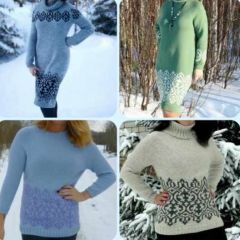 Вяжется из натуральной пряжи контрастных цветов. Джемпер, свитер или платье, связанное по этому описанию, радовать будет не один сезон. Узор, которым Вы сможете украсить верхнюю и нижнюю часть, станет изюминкой всего изделия.