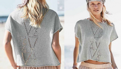 Красивый и оригинальный топ с ажурными треуголниками разной величины несомненно привлечет к себе внимание и будет комфортным в жаркое лето.