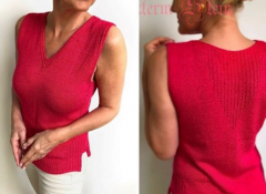 Красиво облегающий летний топ с эффектным узором, плавно вяжется сверху вниз, все края обрабатываются в процессе вязания, благодаря чему нет никакой окончательной отделки, которые многие не любят.