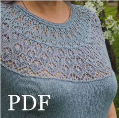 топ с круглои? кокеткои? с легким А-силуэтом. Вяжется сверху вниз полностью без швов. Имеется росток.