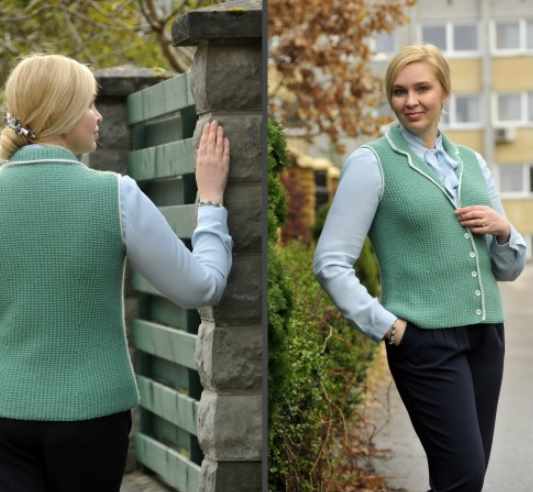 Сочетание строгой формы и мягкости вязаного полотна. Классический жилет с контрастной отделкой станет универсальным предметом вашего гардероба. Соединить казалось бы несовместимые вещи - вот задача этого не совсем обычного жилета.