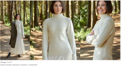 Для вязания свитера на зиму можно взять альпаку, кашемир или супер файн мериноса. Особый изыск модели придает именно белый цвет. Не обязательно это должен быть яркий белоснежный цвет, можно взять и натуральный белый цвет экрю, так называемый не отбеленный цвет, он смотрится гармонично, приближая нас к природе и ее натуральным оттенкам, что и продемонстрировала для нас Ким в этой модели.