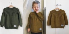 Простой и лаконичный детский пуловер с круглой кокеткой, связанный спицами от датского дизайнера PetiteKnit.