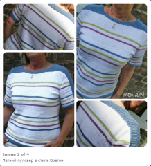 Ах! Отдых у моря! Легкий вязаный пуловер в стиле рубашки Бретон выполняется спицами сверху вниз, без швов.