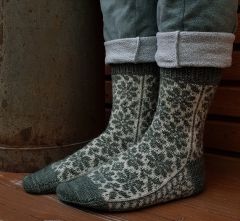 Идите и ловите весну и лето с этими носками! Не будет ничего лучше, чем рисовать цветы и краски из шерсти сейчас и носить их холодными ночами осенью и зимой позже. Носки вяжутся сверху вниз с помощью двухцветной жаккардовой техники 'Fair isle'. Очень оригинально смотрится отдельный цветочный мотив вписанный в клин пятки.