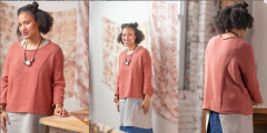 Перед, спинка и рукава вяжутся прямыми рядами снизу вверх и сшиты вместе. После того как тело и рукава связаны и сшиты, поднимаются петли горловины, которая вяжется по кругу до завершения. Небольшие отверстия подчеркивают облегающую геометрическую вставку переда, которая подойдёт для любой фигуры, а дополнительный инновационный двойной подол закрепляет легкий поток готового полотна из пряжи Peerie. Привнесите блеск и простоту в свой стиль с помощью восхитительного минимализма