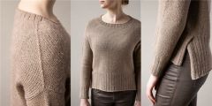 Приятный женский пуловер с разрезами по боковым швам и разной длиной переда и спинки.