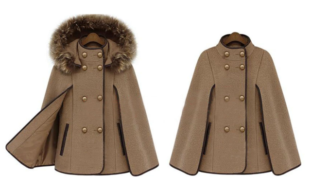 Электронная выкройка «пальто-кейп со стойкой и капюшоном» 40-64