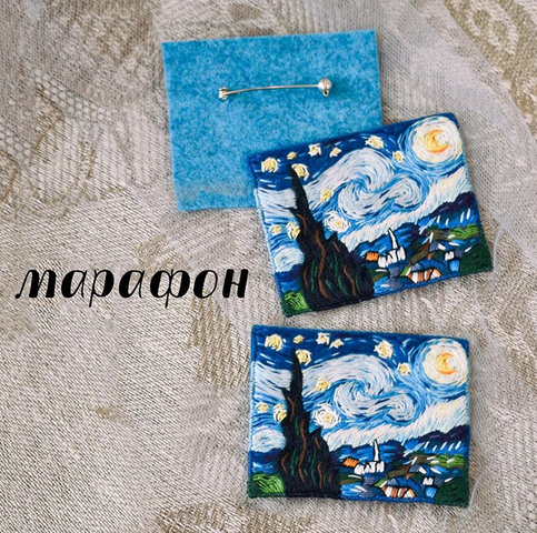 Вышитая брошь Звездная ночь Ван Гога (tut.mk)