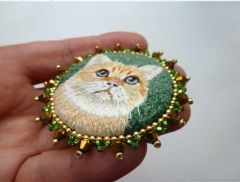 [Вышивка] Брошь «Рыжий кот» (Мария Фараонова)