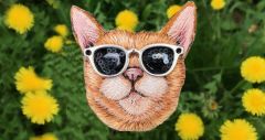 • закончите полностью вышивку, украсите котика очками и превратите в брошь.А, также, в этом уроке вы вышьете светлые участки шерстки (ушки, носик, щёчки, подбородок). Изюминкой станет украшение котика пайетками, которые имитируют стекла и оправой очков. И, в самом конце урока вы научитесь правильно и аккуратно превращать вышивку в брошь!