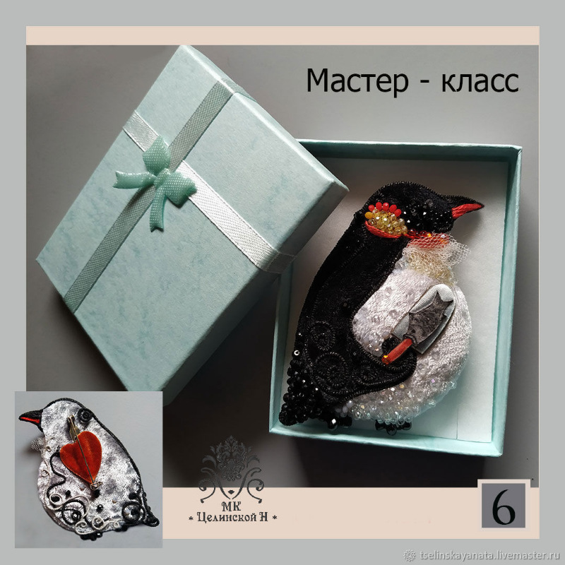 [Вышивка] Объемная брошь «Пингвин» (Наталья Целинская)