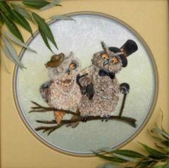 • вышивать гладью глазки совушек и веточку, на которых они сидят;