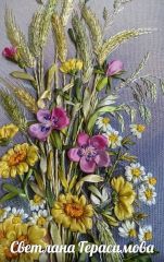 Вышивка лентами 'Полевая герань с ромашками' (Светлана Герасимова)
