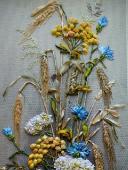 Вышивка лентами 'Васильки с пижмой' (Светлана Герасимова)