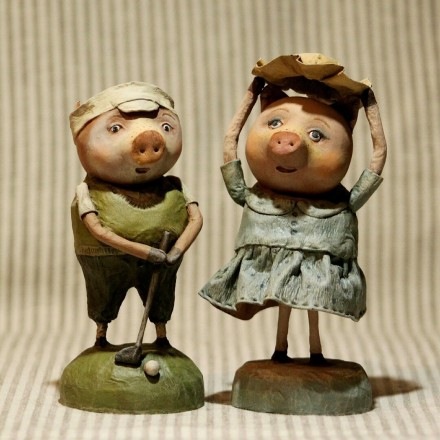 Хрюши выполнены из недорогих материалов в смешанной технике.