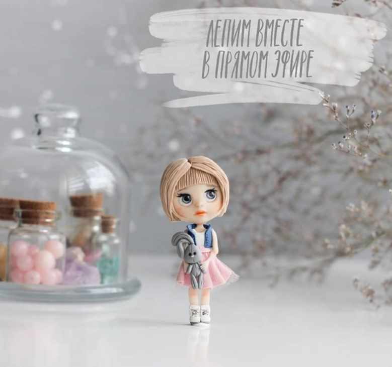 Запись прямого эфира по лепке девочки - брошки с большими глазами (Саша Вихарева)