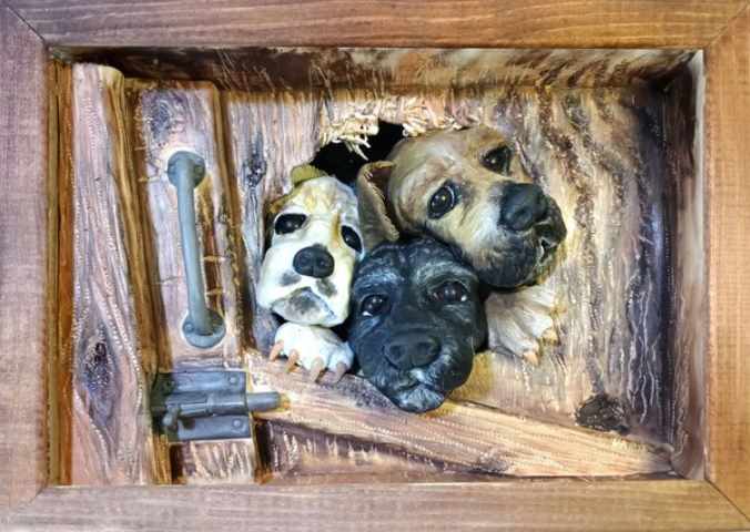 Объемная картина с тремя собачками.