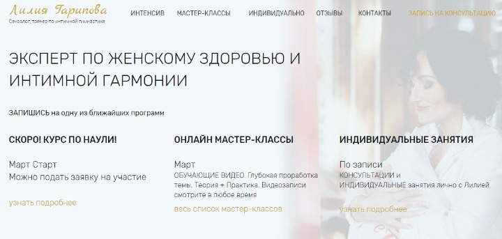 Я сексолог, психотерапевт, тренер по интимной гимнастике, йоге корректный подход к позвоночнику, архитектуре тела, естественному омоложению, автор и ведущая программ для женщин. У меня за спиной десятки инструкторских курсов и тренингов у лучших мастеров в сфере женственности, психологии и сексологии. Я увлеченно продолжаю обучаться и собирать знания о том, как быть настоящей женщиной: чувственной, притягательной, желанной, обожаемой, а главное – счастливой, излучающей здоровье. И как быть в любом возрасте магнетически притягательной для мужчин.