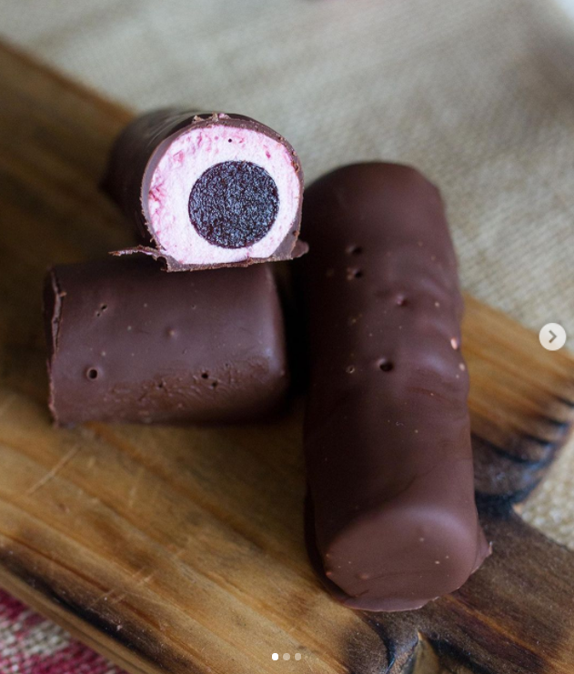 В сториз показала очень интересный вариант зефира - в виде палочек, с вишнёвой начинкой и все это в хрустящей шоколадной глазури!