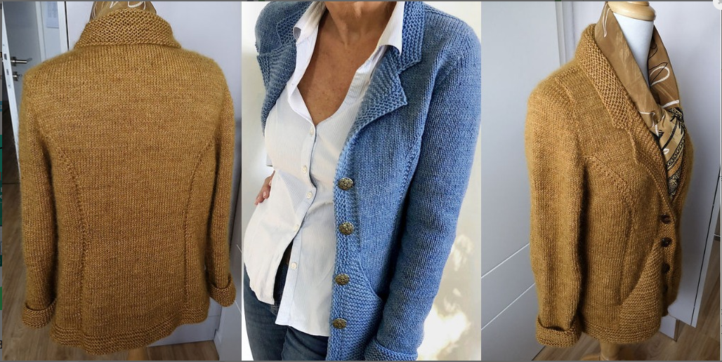 Выбрав один из 3 силуэтов и из 2 вариантов длины жакета, вязать вниз корпус одной деталью.