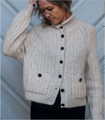 RibbedRaglan – это мягкий и пушистый вязаный жакет с элегантной линией реглана, деталями, связанными ломаной резинкой и отделкой скрещенной резинкой. Край воротника выполнен мягким руликом. Кардиган вяжется снизу вверх. Корпус выполняется поворотными рядами, а рукава по кругу, отдельно. Затем корпус и рукава соединяются для вязания кокетки и воротника. В завершении петли поднимаются по краю полочек и вяжутся планки.