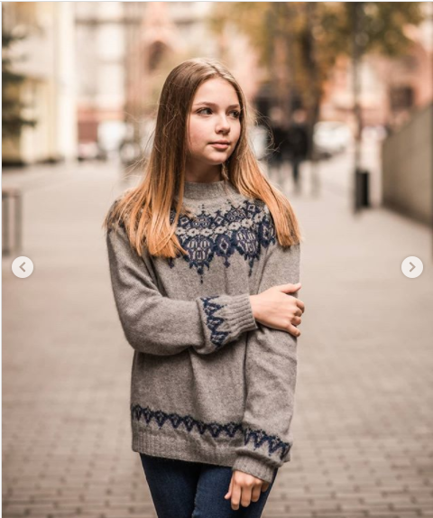 Жаккардовая кокетка, укороченные ряды, формирующие росток, орнамент по краю изделия.