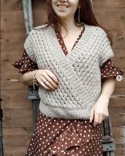 Можно вязать из любой пряжи, без привязки к плотности. Расход 250-350г в зависимости от размера и пряжи.