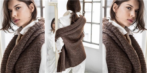 Женский жилет вязаный спицами одной частью полупатентным узором, придающим модели объем и текстуру.