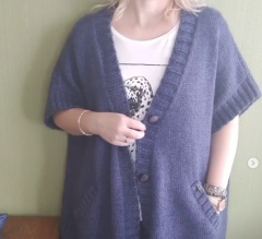 Жилет 'Южная ночь', связан сверху вниз, с цельновязанными карманами (моя разработка).