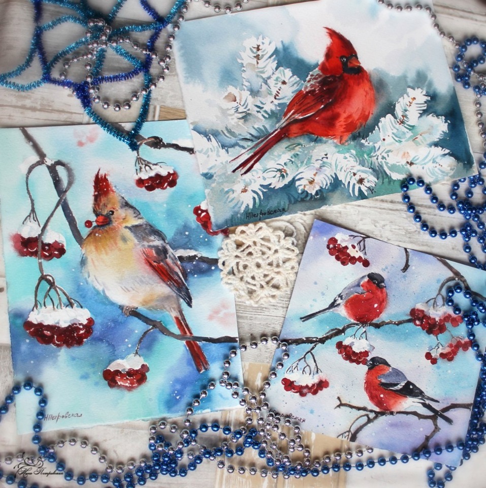 Зимние птицы, комплект мастер-классов. Акварель (Нина Петровская)