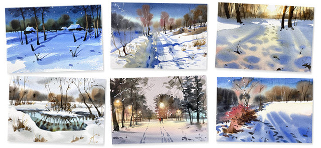 • Нарисуете 3 или 6 зимних картин с разнообразными сюжетами!