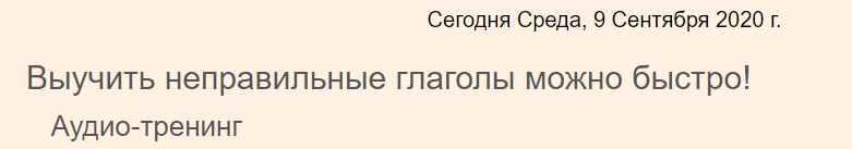 Возможно, в этом и есть доля истины, но мы попробовали взглянуть на процесс творчески, придав зубрёжке некоторое логическое обоснование и немного схитрив. С учётом требований эффективного обучения и пожеланий наших пользователей, мы подготовили для Вас Аудио-тренинг — Неправильные Глаголы за 90 Минут!
