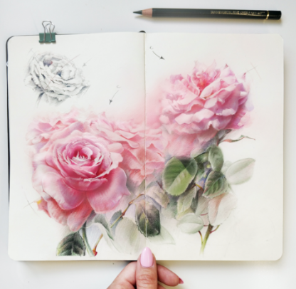 [draw team] Розы цветными карандашами и в смешанной технике (Евгения Щеглова)