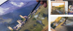 Цель: Гроза и солнце — во втором уроке изучаем контраст как средство художественной выразительности. Поработаем над динамичной композицией с рекой и горными склонами, освоим правило золотого сечения на практике. Напишем пейзаж по сырому и закрепим все новые знания.
