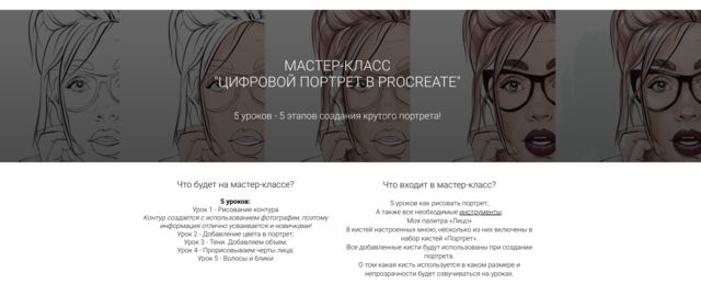 В курсе 5 уроков как рисовать портрет - по шагам.