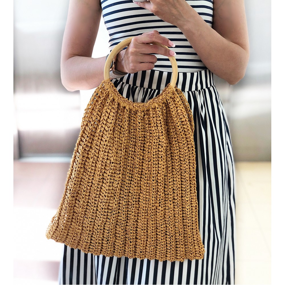 Под весом практически не растягивается. Деревянные ручки и декор из пуговиц придают ей шарм!