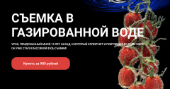 В этот раз мы поработаем с газированной водой, поймем, какие возможности нам подарит этот прием. В своей работе я неоднократно использовал съемку в газированной воде в коммерческих заказах. Уверен, что этот прием станет любимым и в твоем арсенале.