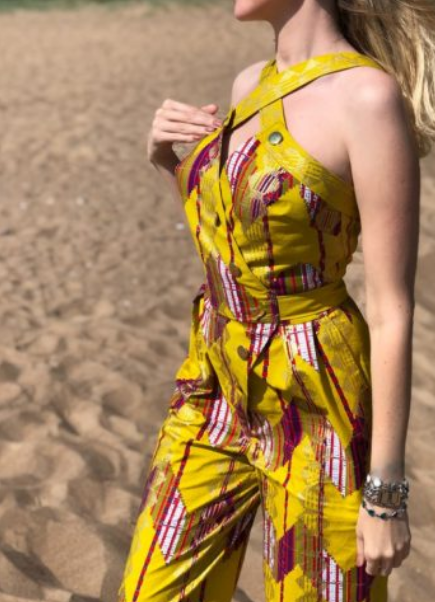 Комбинезон женский прилегающего силуэта, отрезной по линии талии, на притачных планках и бретелях, с запАхом, с застежкой на прорезные петли и пуговицы. Перед с двойными нагрудными вытачками. Брюки «бананы» с боковыми карманами. В комплект лекал (отдельным файлом) входит юбка «футляр», на замену брюкам.
